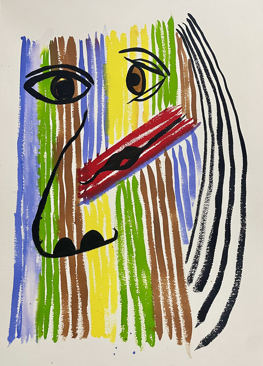 In my abstract pieces, I experiment with composition and collage, using a primary and bright color palette. Some of these works begin as torn paper collages, that I then re-imagine as lager scale pieces in acrylic or watercolor.