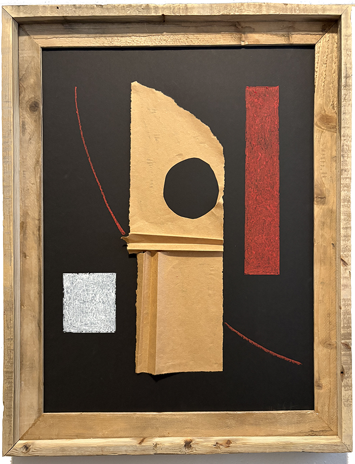 "Abstract Study, Red:black:Gold" (2025), "16x20" Paper & oil stick on board $3000