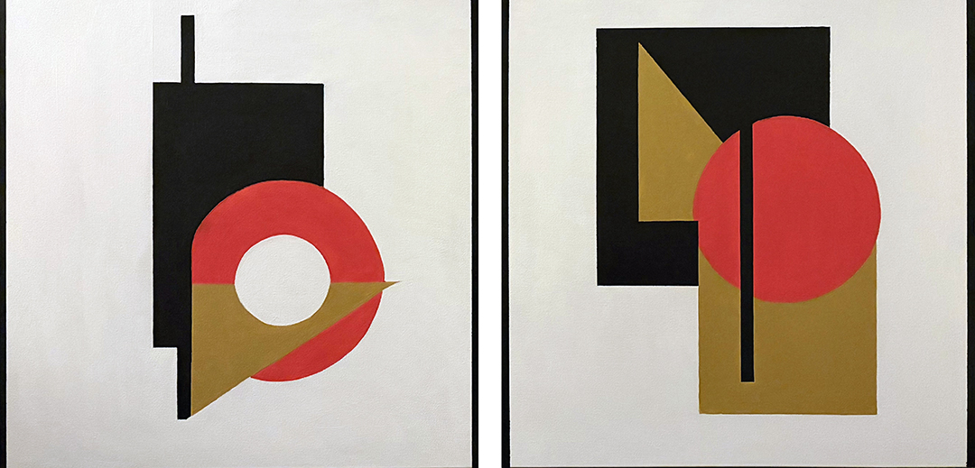 "Red:Black:Gold (2025) Two panels "20x20" ea Acrylic on canvas $2500